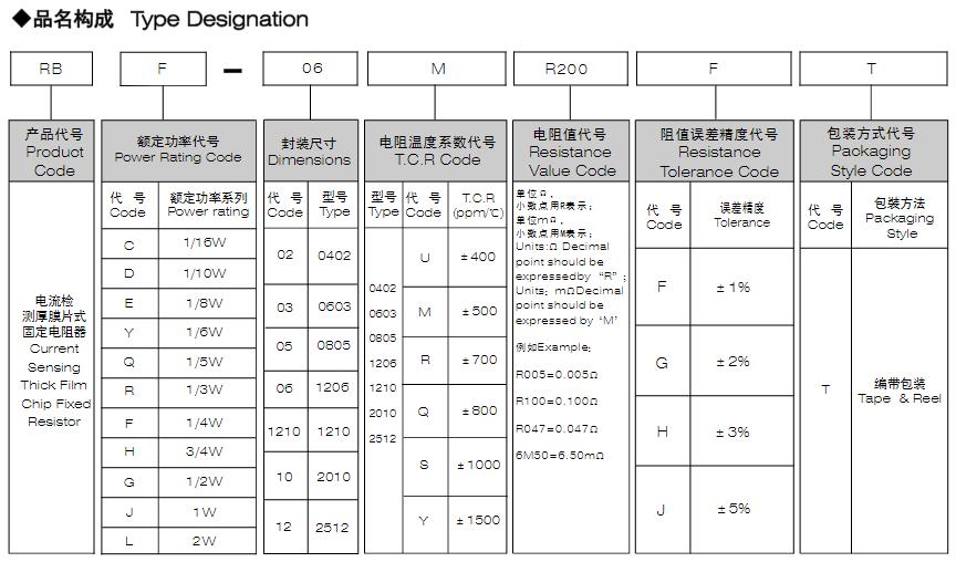 風華電流檢測厚膜片式固定電阻器型號命名規則: