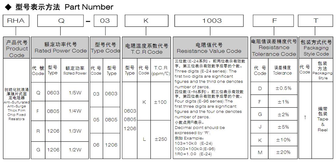 風華高科抗硫化抗浪涌厚膜片式固定電阻器 型號命名規則: