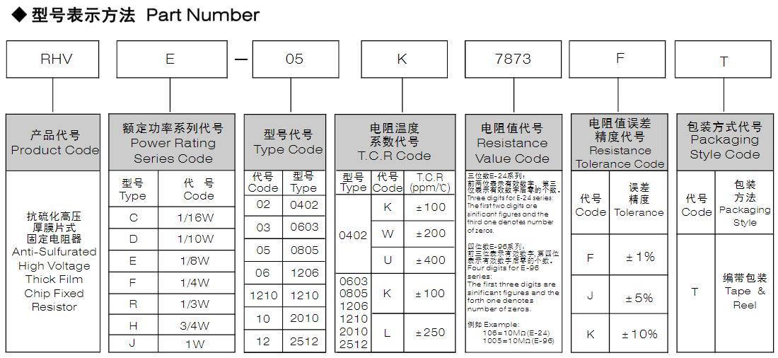 風華高科抗硫化高壓厚膜片式固定電阻器型號命名規(guī)則: