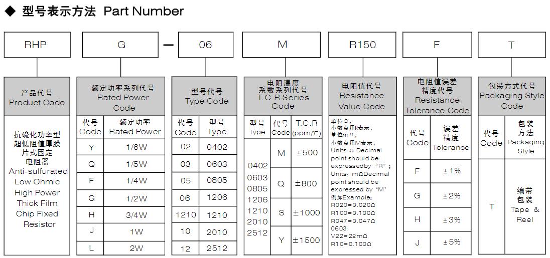 風(fēng)華高科抗硫化功率型超低阻值厚膜片式固定電阻器型號(hào)命名規(guī)則: