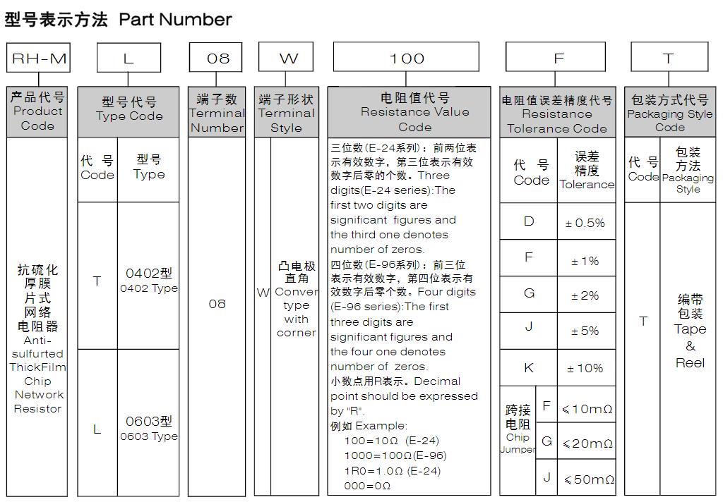 風(fēng)華高科 抗硫化厚膜片式網(wǎng)絡(luò)電阻器型號(hào)命名規(guī)則: