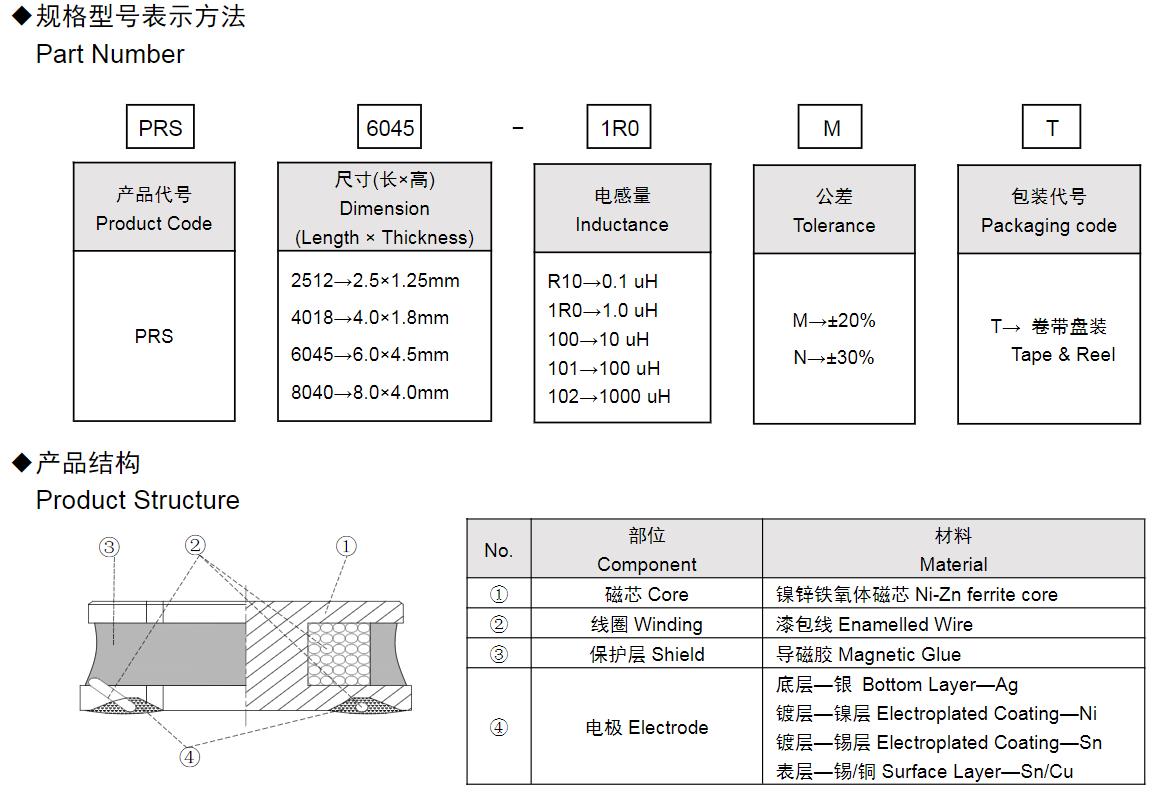 風(fēng)華高科PRS系列功率電感器命名規(guī)則: