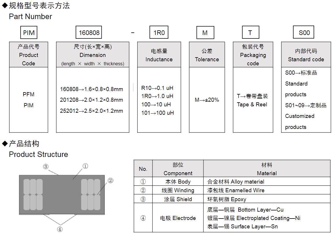 風華高科PIM&PFM系列功率電感器命名規(guī)則: