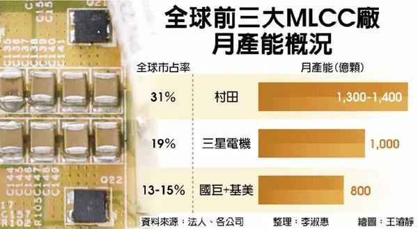 初估大發新廠滿載稼動之下,兼并估計基美的MLCC產能,新國巨MLCC月產能可望站穩1,000億顆,僅越日商村田(Murata)、韓商三星電機(SEMCO),穩居寰球第三大廠。