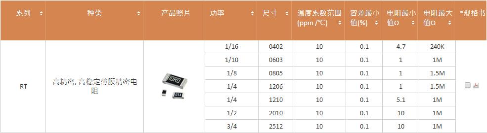 YAGEO國巨薄膜精密電阻-RT系列,采用先進(jìn)的濺射技術(shù),國巨薄膜芯片電阻提供高精密度,高穩(wěn)定性,±0.1%的窄公差和±25ppm/℃的低TCR。最小的尺寸為0201,最低TCR為±5ppm/℃。