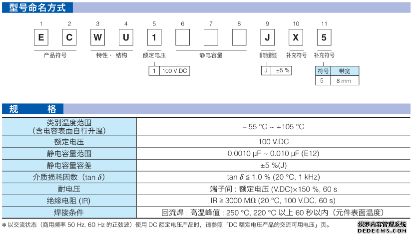 PANASONIC松下貼片電容命名規則: