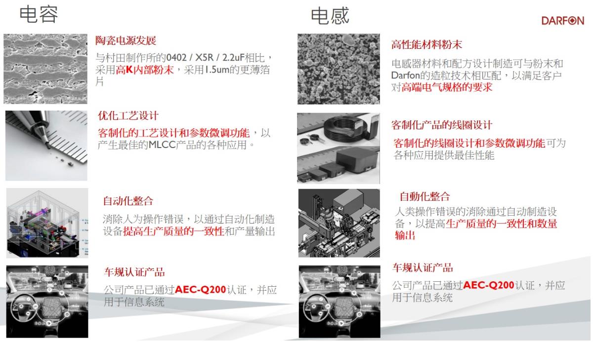 被動組件部分,達方著重運用先進材料以及增進高階粉末技術(shù)研發(fā)高信賴性產(chǎn)品,用于提升電氣特性以及高頻應(yīng)用性能,并且促進良率及制程穩(wěn)定度。達方目前為IT/工業(yè)/醫(yī)療/網(wǎng)絡(luò)通信/汽車產(chǎn)業(yè)提供高質(zhì)量消費等級與車規(guī)產(chǎn)品被動組件以支持新應(yīng)用技術(shù)開發(fā)。