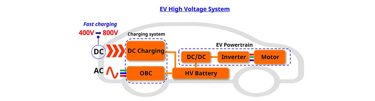 電動(dòng)汽車Powertrain的基本構(gòu)成為儲存能源的高電壓電池、逆變器和電動(dòng)馬達(dá)。電動(dòng)汽車Powertrain使用高電壓。與電動(dòng)汽車耗電效率相關(guān)的部分是高效的電力轉(zhuǎn)換。電動(dòng)汽車中有LDC、OBC、Inverter等多種電力轉(zhuǎn)換裝置。采用多種DC/DC Converter Topology,可實(shí)現(xiàn)各裝置間的整合。實(shí)際上OBC(On Board Charger)和LDC(Low-Voltage DC/DC Converter)也在實(shí)現(xiàn)整合。若實(shí)現(xiàn)系統(tǒng)整合,可以減少零件數(shù)和使用空間。