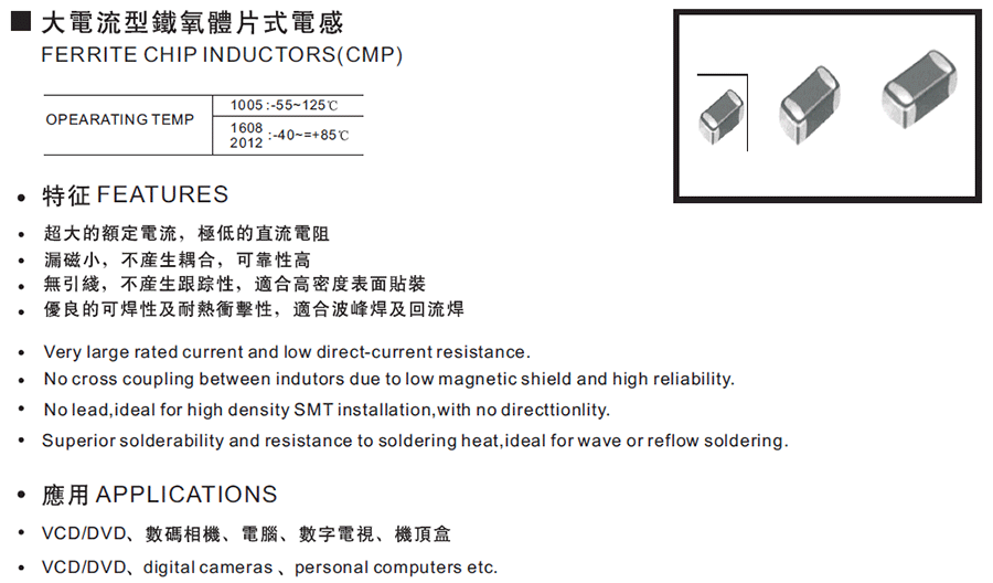產品介紹:風華CMP疊層片式貼片大電流電感