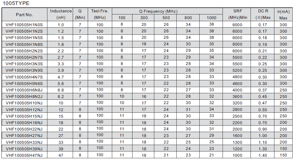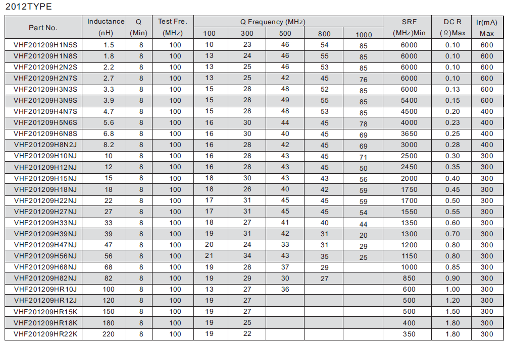 風華高頻電感_風華疊層片式高頻_VHF系列_風華代理商