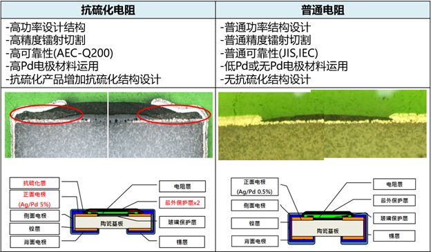 2、抗硫化電阻和普通電阻設(shè)計(jì)上的區(qū)別